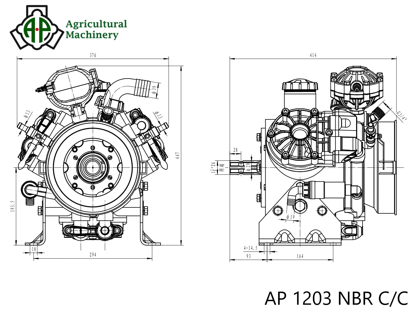 AP 1203 NBR C/C - трех мембранный насос для профессионального применения в сельском хозяйстве на опрыскивателях для обработки садов или виноградников с использованием средств защиты растений в режиме высокого давления. Мембраны и уплотнения выполнены из материала NBR (Бутадиен-нитрильный каучук). Корпус насоса выполнен по технологии литья под давлением.