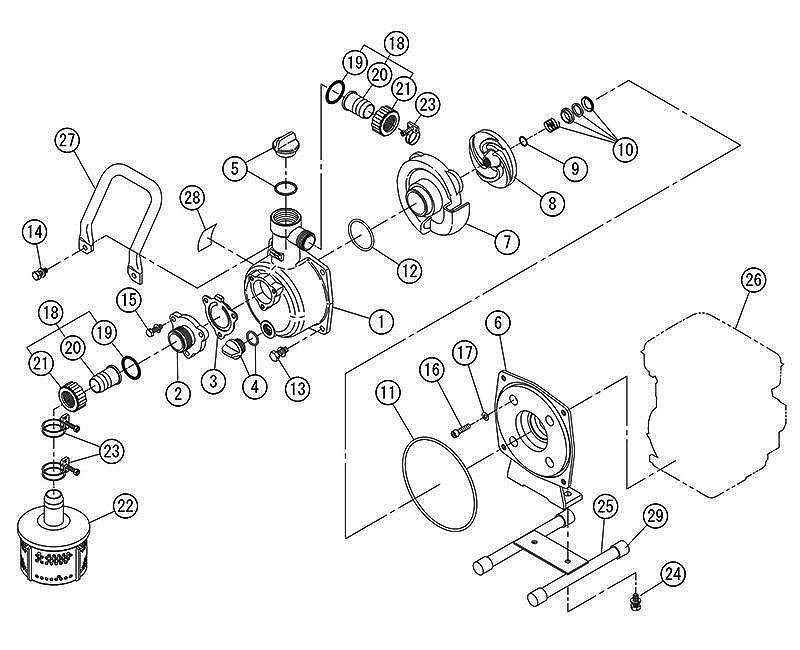 - Простой и легкий запуск без предварительного заполнения водой всасывающего шланга, достаточно заполнить водой корпус насоса.