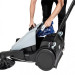 Модель SW980 оснащается компактной тележкой с двумя круглыми щетками. Они приводятся в движение при помощи механического привода. Он работает от вращения колес, то есть не требует подключения к сети или использования других источников питания. Емкость для сбора мусора находится под верхним кожухом – достаточно поднять его, потянув за ручку.