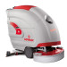Машина управляется пешим оператором, и оснащена приводом движения. Движение машины осуществляется за счет электропривода - вместе с включением вращения щетки, машина начинает движение. Оператор управляет скоростью движения с помощью регулировок на панеле управления. Электропитание осуществляется от аккумуляторных батарей, установленных на борту моечного агрегата. Машина полностью автономна: во время работы оператору не нужно отвлекаться и регулярно поправлять сетевой кабель. Бортовая сеть 24 В - 4-е аккумулятора по 6 В соединены последовательно. Машина комплектуется тяговыми аккумуляторными батареями гелевого типа. Емкость батарей 180 Ач (при С5), время работы от одного заряда порядка 4-х часов.