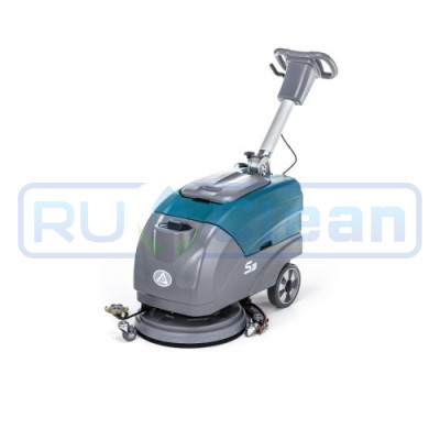 Машина управляется пешим оператором и не оснащена приводом движения. Движение осуществляется за счет усилия толкания, а также за счет вращения щетки. Усилие толкания на ровной горизонтальной поверхности не превышает 2-3 кг. Электропитание осуществляется от аккумуляторных батарей, установленных на борту моечного агрегата. Машина полностью автономна: во время работы оператору не нужно отвлекаться и регулярно поправлять сетевой кабель. Бортовая сеть 24 В - два аккумулятора по 12 В соединены последовательно. Машина комплектуется тяговыми аккумуляторными батареями AGM типа. Емкость батарей 31 Ач (при С5), время работы от одного заряда порядка 1.5 ч.