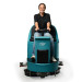 Модель райдерного типа, с местом для оператора. Все машины данной конструкции оснащены приводом движения. Начало и скорость движения управляются оператором с помощью педали. Электропитание осуществляется от аккумуляторных батарей, установленных на борту моечного агрегата. Машина полностью автономна: во время работы оператору не нужно отвлекаться и регулярно поправлять сетевой кабель. Бортовая сеть 36 В - три аккумулятора по 12 В соединены последовательно. Машина комплектуется тяговыми аккумуляторными батареями гелевого типа. Емкость батарей 150 Ач (при С5), время работы от одного заряда порядка 2,5 часа.