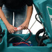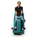 Модель райдерного типа, с местом для оператора. Все машины данной конструкции оснащены приводом движения. Начало и скорость движения управляются оператором с помощью педали. Электропитание осуществляется от аккумуляторных батарей, установленных на борту моечного агрегата. Машина полностью автономна: во время работы оператору не нужно отвлекаться и регулярно поправлять сетевой кабель. Бортовая сеть 24 В - два аккумулятора по 12 В соединены последовательно. Машина комплектуется тяговыми аккумуляторными батареями гелевого типа. Емкость батарей 100 Ач (при С5), время работы от одного заряда порядка 2-х часов.