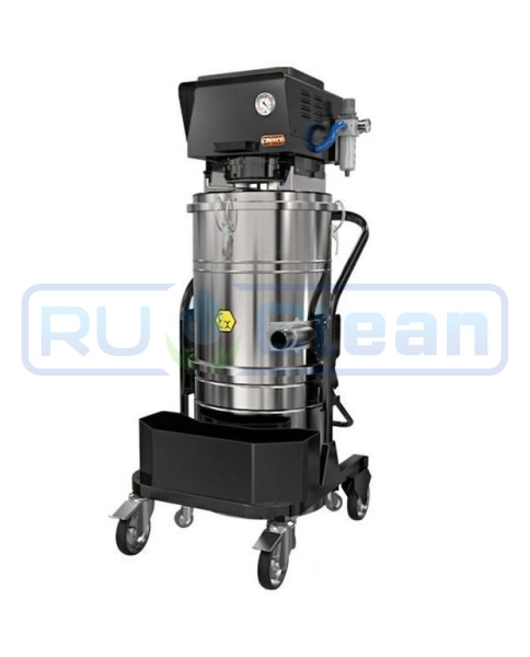 Промышленный пылесос Coynco PRO S PN предназначен для уборки мелкодисперсной пыли, пыли класса M, сухой пыли и мусора на разных промышленных объектах. Оснащен пневматическим двигателем работающим от магистрали или компрессора давлением 4 – 6 бар, обеспечивающим высокий воздушный поток до 380 м³/ч и создающим вакуум до 380 мбар. Потребление воздуха 1500 л/мин. Объем мусоросборника 50 литров. Тангенциальный впуск по касательной к баку создает эффект циклона и способствует предварительной сепарации пыли. Оснащен фильтром класса М. Полуавтоматическая система очистки фильтра. Корпус изготовлен из специальной антистатической нержавеющей стали. Контейнер для принадлежностей обеспечивает удобное хранение необходимых насадок для работы. Высокая производительность, эффективная фильтрация и запатентованные технологии делают этот пылесос незаменимым помощником в поддержании чистоты и создании безопасной рабочей среды.